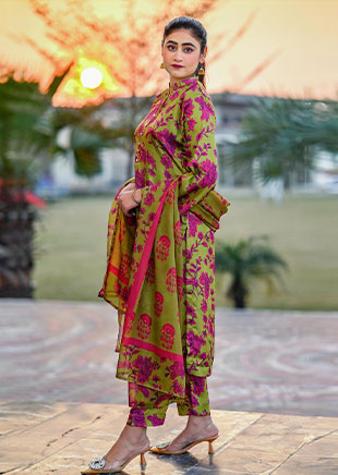– Salwar: Matching digital silk salwar with elegant folds and comfortable fit